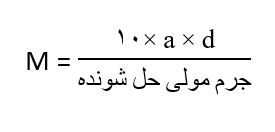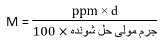 نکته: رابطه بین غلظت مولی و غلظت ppm نیز به صورت زیر است (چگالی محلول برحسب g.ml-۱):