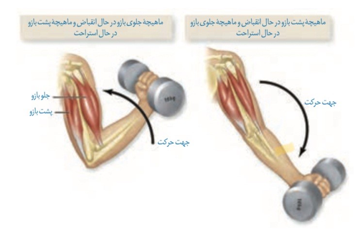 - انقباض هر ماهیچه فقط میتواند استخوانی را در جهتی خاص بکشد، ولی آن ماهیچه نمیتواند استخوان را به حالت قبل برگرداند.